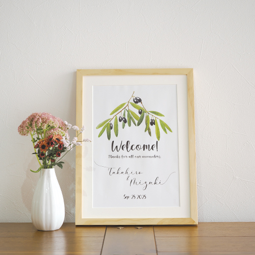 ウェルカムボードに使うフレームはある程度大きさが必要ですよね。中に飾るものの雰囲気を壊さずに、かつおしゃれなフレームがいいし、ナチュラルな感じにもしたい。。など、いろいろ総合するとやっぱり木製のフレームが無難でおすすめになります。