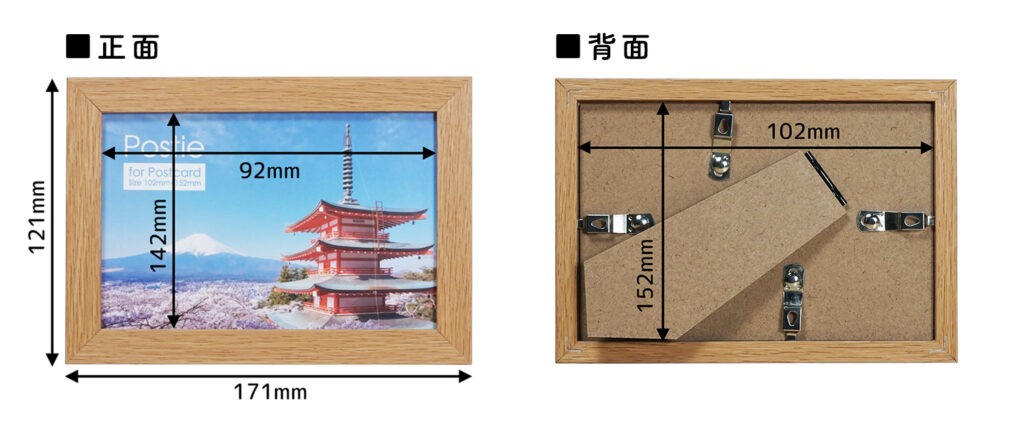 ポスティはポストカード(100mm×148mm~102mm×152mm)がピッタリ収まるサイズです。観光地のポストカードはもちろん、美術館で購入したポストカード、推しのグッズなど、お気に入りのポストカードを飾るのにおすすめです。タテヨコ兼用のスタンド付きなのでお好きなところに置いて飾れますよ!