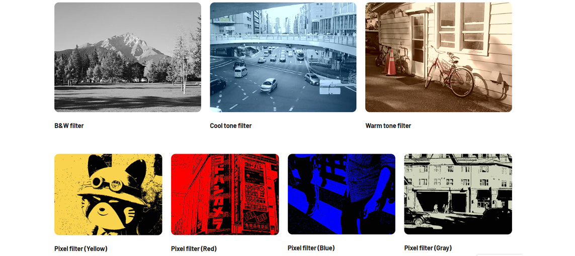 とても小さいCHARMERAですが、4つのフレームと7つのフィルターがあり、撮った写真を背面のモニターを見ながら編集できます。日付も入れることができます。レトロかわいいですね。