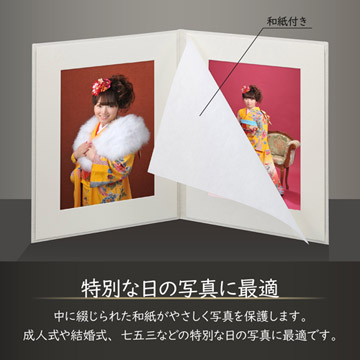 紬のような織模様を表紙に使用した上品さを演出する厚みのある写真台紙