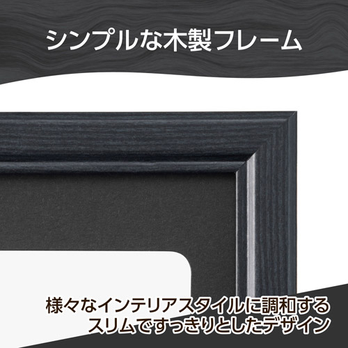 シンプルなデザインでUVカットPET板を使用したA4サイズ用の木製額縁。B5サイズも飾れるマット紙(中額)付き。
