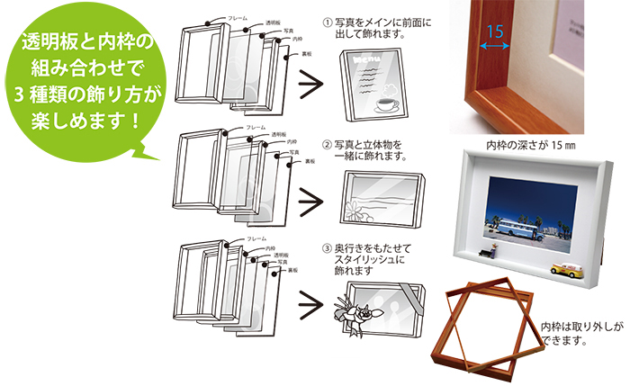 シャッフルプリントに最適。立体物も飾れます。