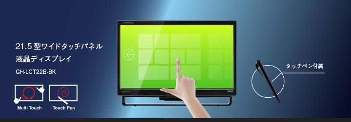 GH 21.5型ワイドタッチパネル液晶ディスプレイ GH-LCT22B-BK 【取寄】