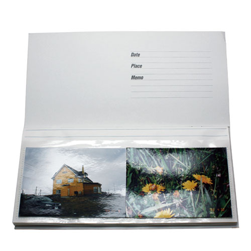 パノラマサイズが入るミニアルバム。L判は並べて2枚入ります。