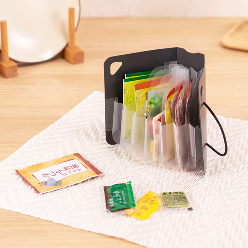 miniサイズは、調味料の小袋や化粧品サンプル、カード類やレシートなど、バラバラしがちな小物の収納に。
