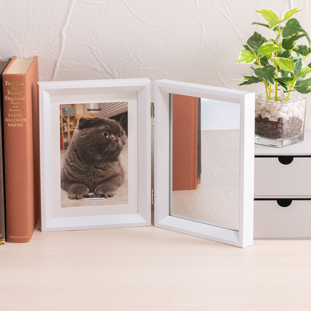 ナカバヤシ 鏡&フォトフレーム 2面/2L ホワイト【取寄】