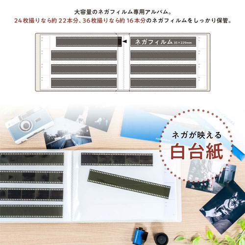 ポケット:ネガフィルム4段ポケット・横入れ・3層白台紙14枚・ポリプロピレン