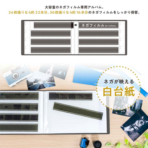 ポケット:ネガフィルム4段ポケット・横入れ・3層白台紙14枚・ポリプロピレン