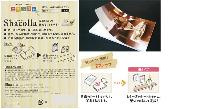 壁やガラスの平らな面に貼り付けて、その上に自由に写真を貼り付けられる両面貼り付けシート。