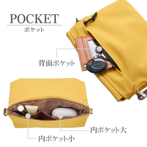スマートフォンやお財布など、必要最低限の身の回りアイテムをコンパクトに収納し、身軽にお出かけできる軽量、薄型のサコッシュ。