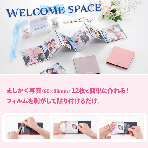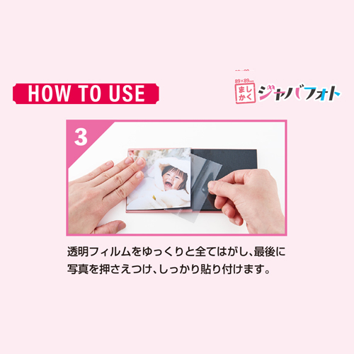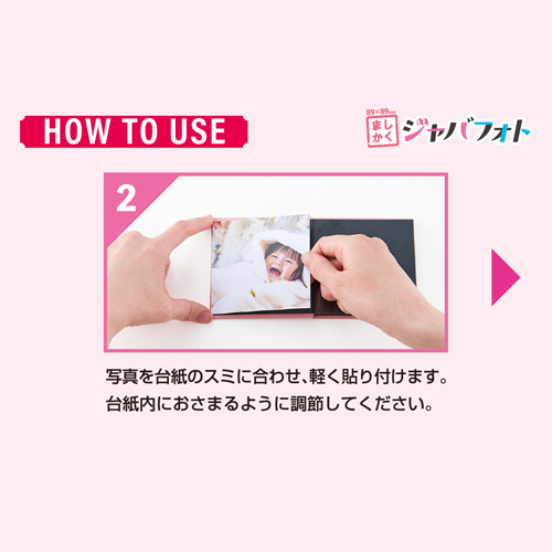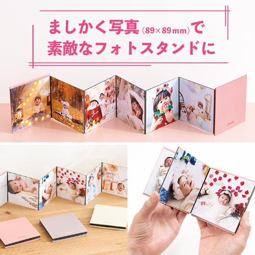 ※ましかくサイズ(89×89mm)以外の写真は貼り付けないでください。台紙同士が貼りついたり、写真がはみ出て折れる可能性があります。