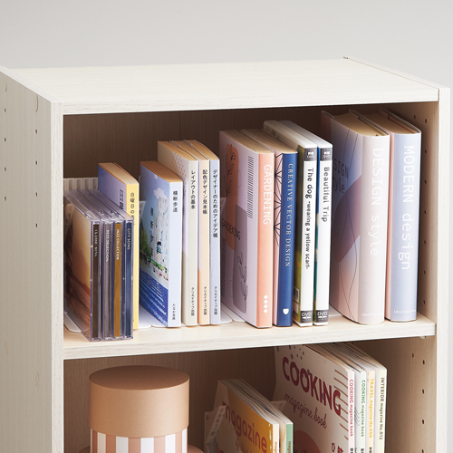 スタンダードサイズ(A-3575)1台とミニサイズ(A-3578)2台を連結させるとカラーボックスに収まります。