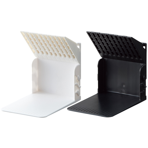 両サイドのストッパーが差し込んだものを保持するので倒れません。