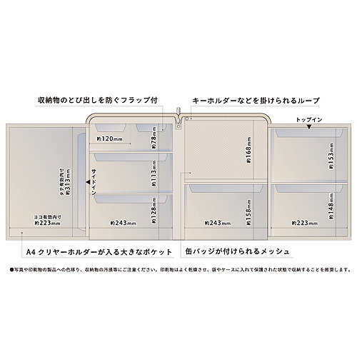 大きいポケットにはA4判が収納できます。