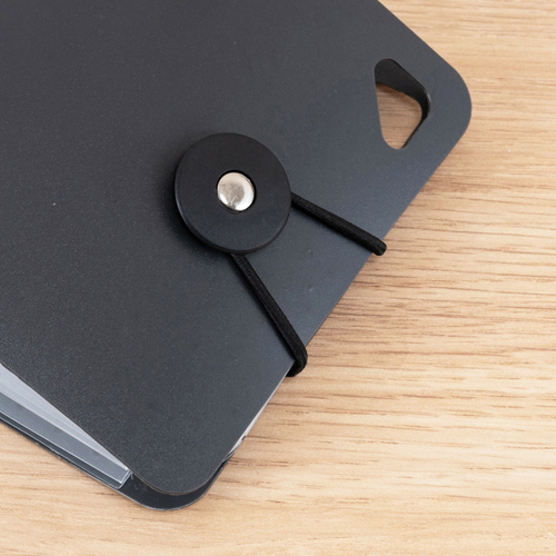 ワンタッチで開閉できるゴムバンド固定式を採用しています。
