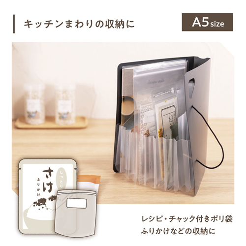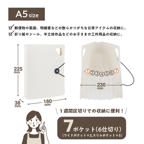 A5サイズは、郵便物や薬袋、明細書などの散らかりがちな日常アイテムの収納に。