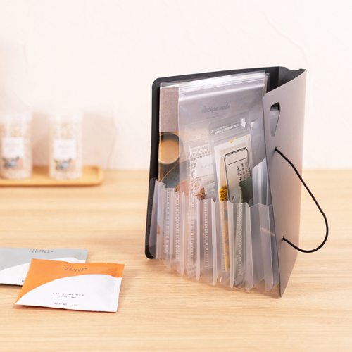 miniサイズは、調味料の小袋や化粧品サンプル、カード類やレシートなど、バラバラしがちな小物の収納に。