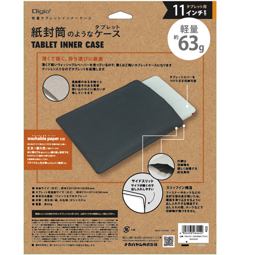 ナカバヤシ 11インチタブレット用インナーケース ウォッシャブル ブラック【取寄】