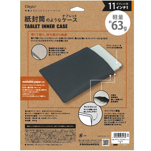 ナカバヤシ 11インチタブレット用インナーケース ウォッシャブル グレー【取寄】
