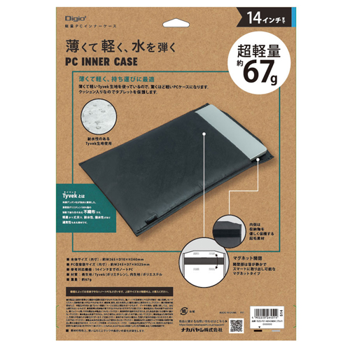 ナカバヤシ 14インチタブレット用インナーケース Tyvek グレー【取寄】