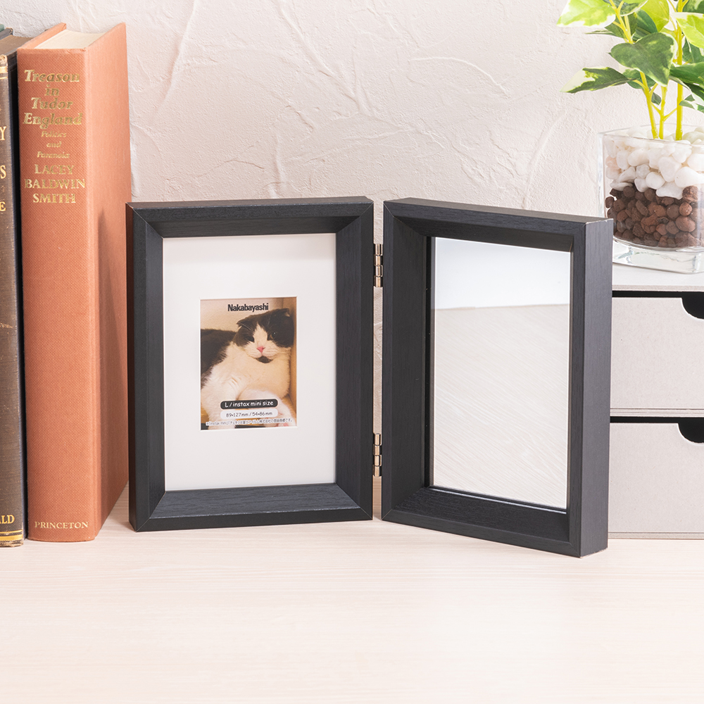 ナカバヤシ 鏡&フォトフレーム 2面/L ブラック【取寄】