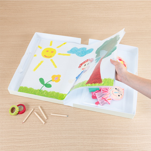 四つ切画用紙も折り目をつけずに保管可能。