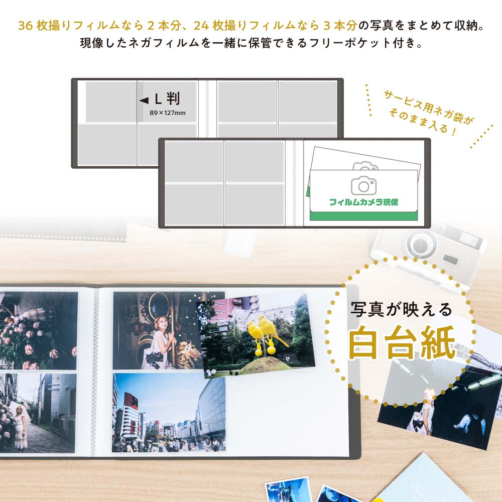 ポケット台紙は、写真が映えるPP製白台紙を採用。